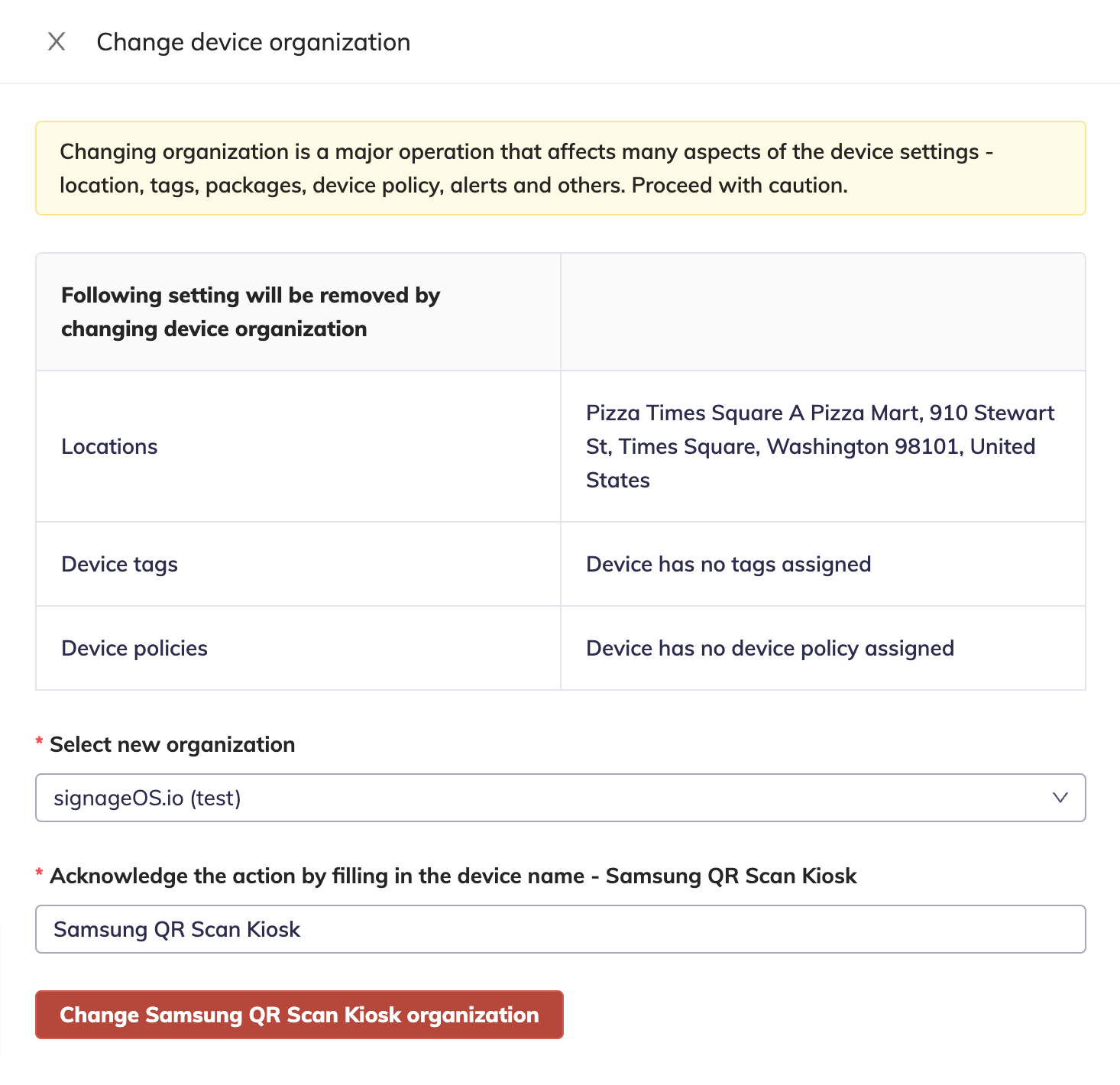 - Select a new Organization for the device