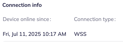 In rare cases - such as unexpected device reboot or poor network connectivity - you can see temporarily up to 5 devices connections. If the list of connections keeps expanding or connections rotate frequently (e.g. every minute) you can temporarily ban the device and contact signageOS support for assistance.